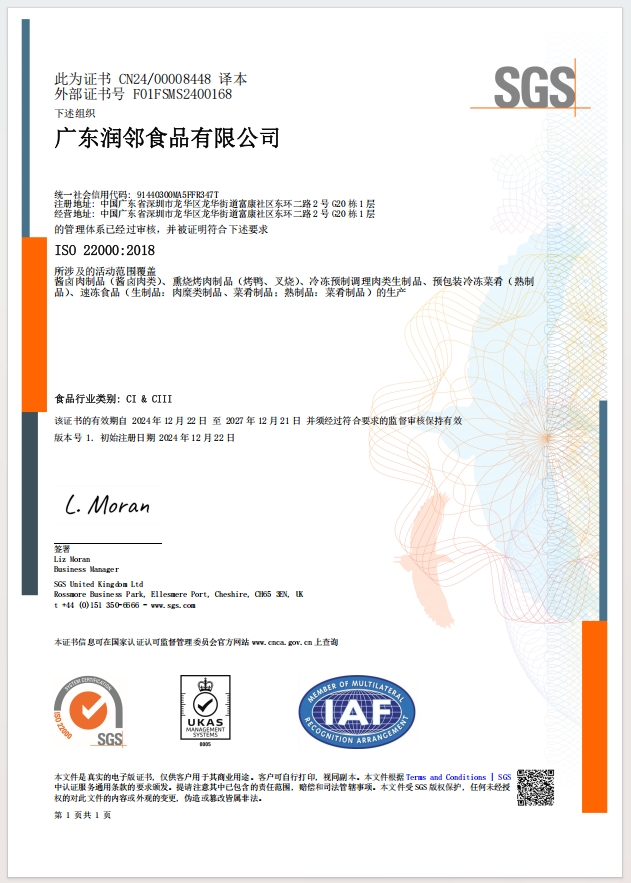 ISO22000食品安全管理体系证书